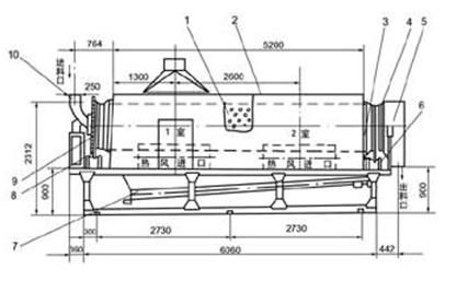 3、根據(jù)產(chǎn)量要求,物料含水率高低,轉(zhuǎn)動(dòng)干燥室可劃分為若個(gè)單元,各單元有相對獨(dú)立的加熱裝置、風(fēng)機(jī)及干燥室。對各單元進(jìn)行合理的布局組合,有利于進(jìn)一步提高熱效率,縮短干燥時(shí)間。